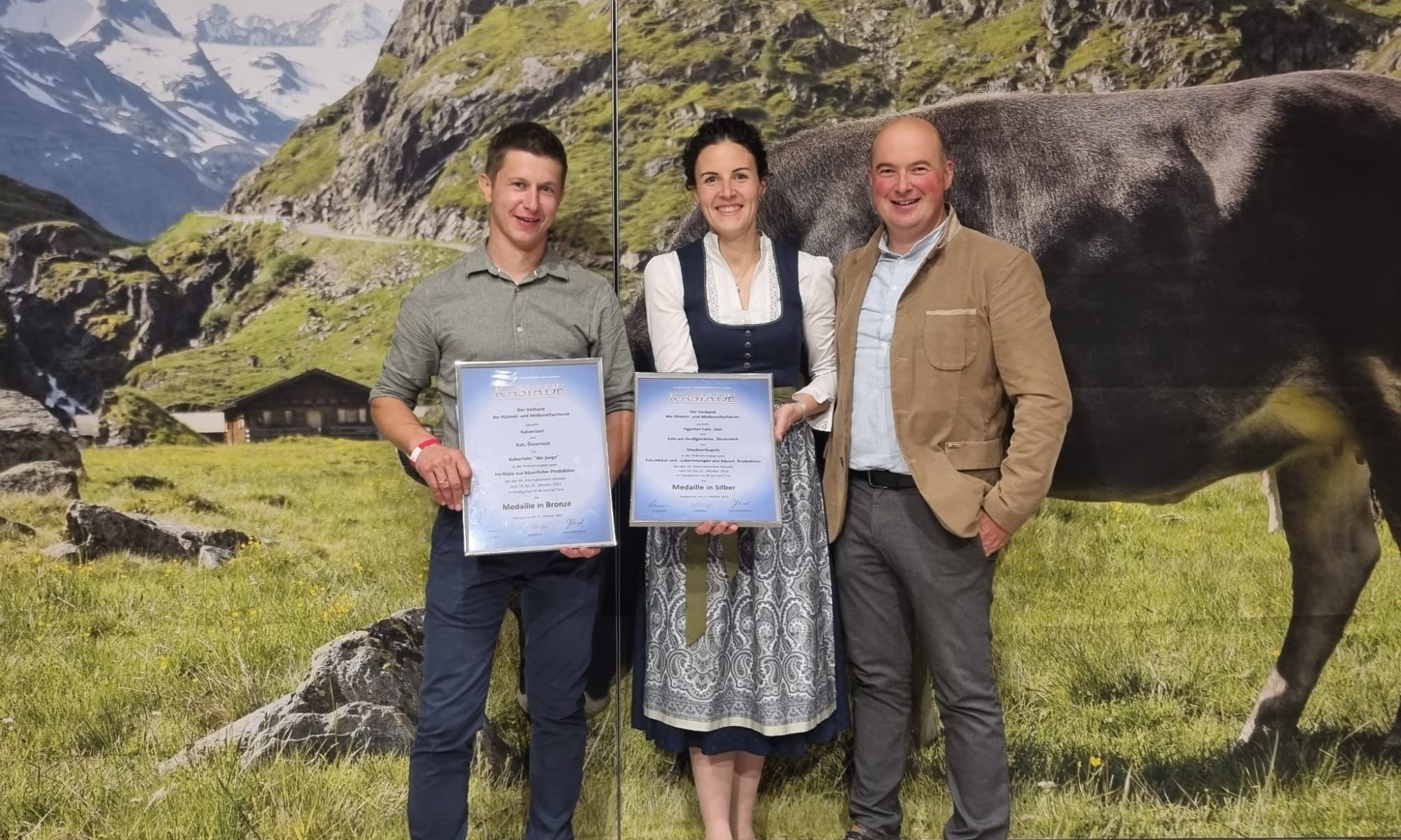 2023 konnten wir erstmals Kuhmilchprodukte aus Bioheumilch unserer Kooperationspartner „Kalsertaler“ bei der Käsiade einreichen. Auf Anhieb erreichte der Kalsertaler Bergkäse „der Junge“ eine Bronze Medaille. Unsere Glocknerkugeln wurden in diesem Jahr mit Silber ausgezeichnet.